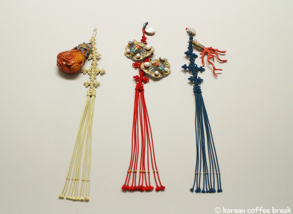 nœuds ornés de pierres semi-précieuses attachés sur le devant du hanbok