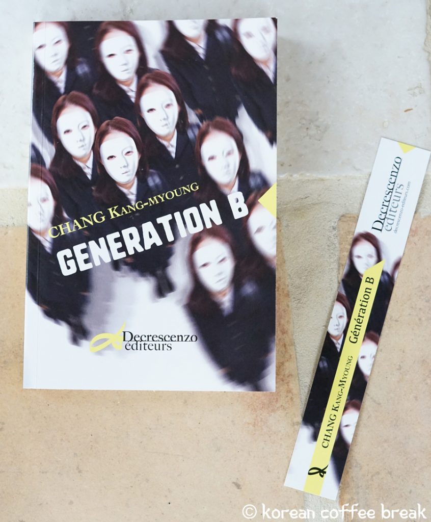 Vous souvenez-vous du roman « Parce que je déteste la Corée » de Chang Kang-myoung ? Cette fiction a fait énormément parler d’elle aussi bien en Corée du Sud qu’en France. Aujourd’hui, les Éditions Decrescenzo nous offrent la chance de découvrir enfin l’un de ces autres romans du genre : « Génération B ». Ce nouveau roman aborde une fois encore la situation de la jeunesse coréenne, celle de la génération 20-30 ans. Cependant, l’intrigue est totalement différente et saisissante.