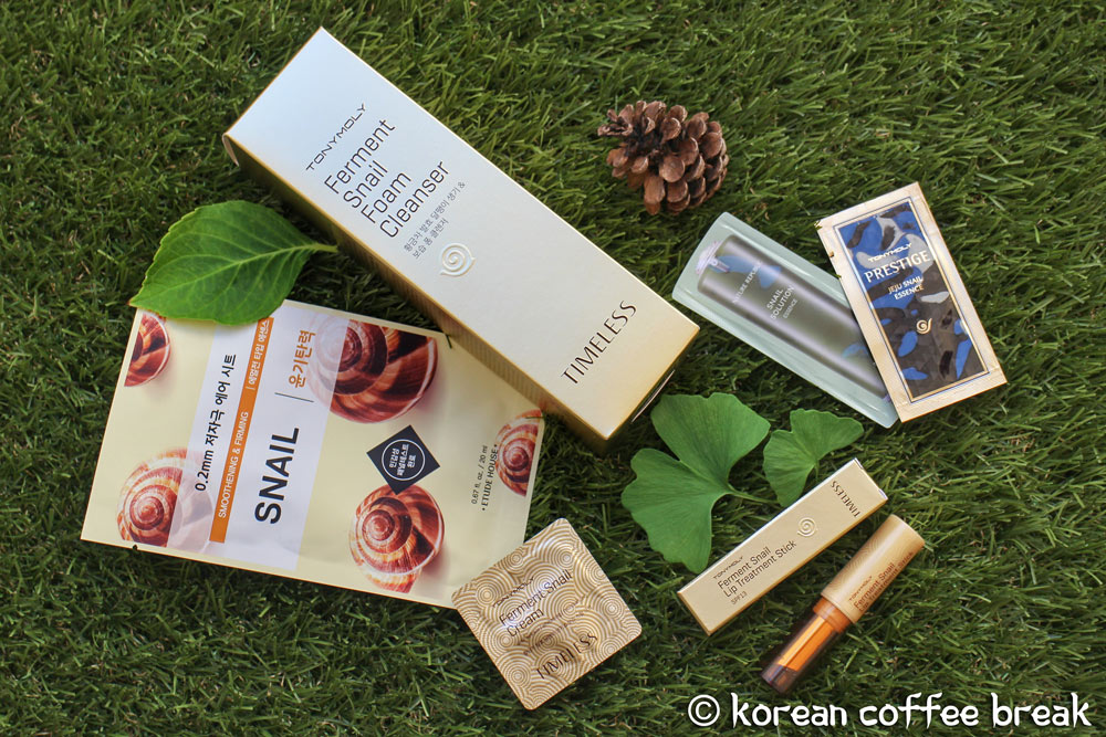 Je sais ce que vous allez me dire… « Beurk des produits à base d’escargot ! C’est horrible, jamais je ne mettrais ça sur ma peau ! » Ha ha, et pourtant les Coréennes en raffolent ! On trouve de nombreux produits à l’escargot : masque visage, crème corps et visage, baume à lèvres, etc.